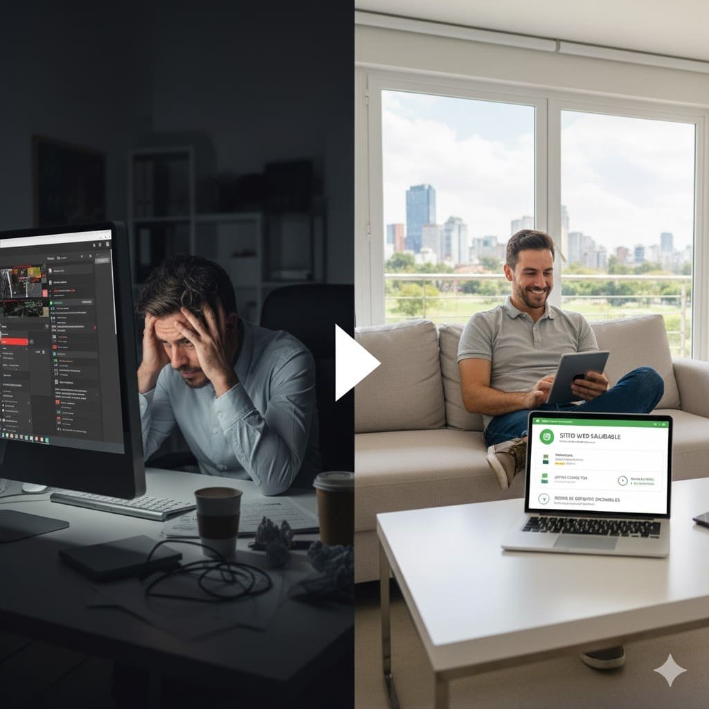 La Solución: El Plan "Manos Libres" de Sonki Nuestros planes de mantenimiento están diseñados para quitarte ese estrés. El plan "Emprendedor" y "E-commerce" no solo protegen tu sitio, sino que incluyen horas de soporte técnico para cambios.
